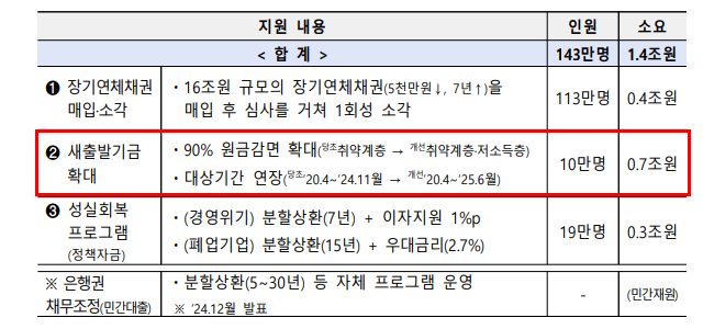 - 새출발기금 확대에는 약 7천억 원이 추가 투입됩니다.