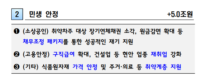 - 내수 진작 및 경제 회복의 마중물 역할 기대