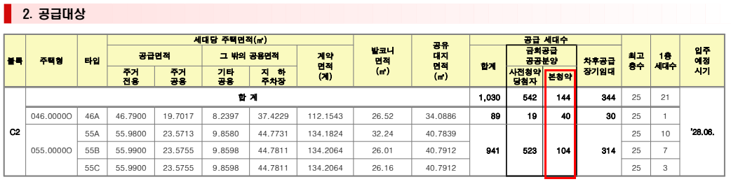 - 본청약 물량: 144세대 (사전청약 완료로 인한 잔여물량)