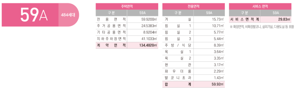 전용 59㎡ 기준 기본분양가는 4억2,930만~4억 5,674만원선인데 층별 타입별 그리고 선택옵션인 마이너스옵션과 발코니 확장, 유사옵션 등에 따라서 실제 입주할 때 부담금을 달라 질 수 있습니다.