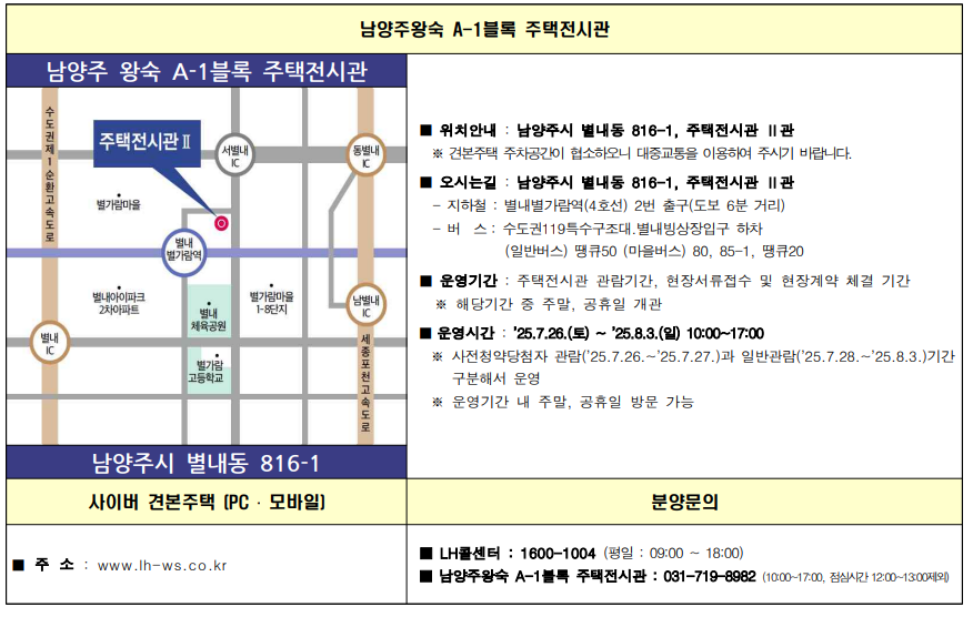 사이버 견본주택은 ‘www.lh-ws.co.kr’에서 별도 오픈(7월 26일 13시)되니, 현장 방문이 어렵거나 타입별 구조·옵션별 인테리어를 세부 비교하실 분께 권장합니다.