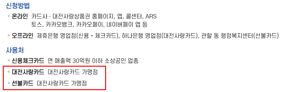 - 대전사랑카드 앱, 홈페이지, 신용/체크카드사 앱 및 웹사이트에서 가능