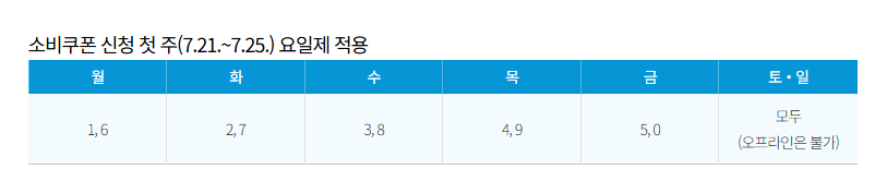 - 첫 주(7.21.~7.25.) 요일제 적용 (출생년도 끝자리 기준).