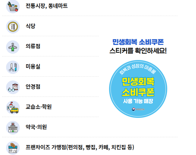 사용 전 반드시 ‘민생회복 소비쿠폰 사용 가능’ 스티커를 매장에서 확인하면 더욱 안전합니다.