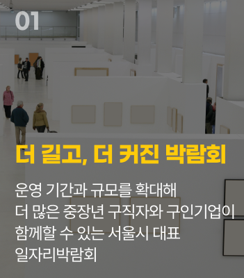 이 외에도 이력서 사진 촬영, 이미지 컨설팅 등 구직 준비를 돕는 다채로운 부대행사가 운영되어, 성공적인 재취업을 위한 마지막 준비까지 완벽하게 지원합니다.
