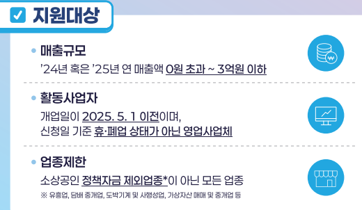 - 매출 기준: 2024년 또는 2025년 연 매출액 3억원 이하