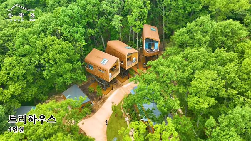 하루 최대 82명(25개 객실)이 머물 수 있으며, 특히 트리하우스는 숲속 나무 위에서 하룻밤을 보내는 특별한 경험을 선사합니다.