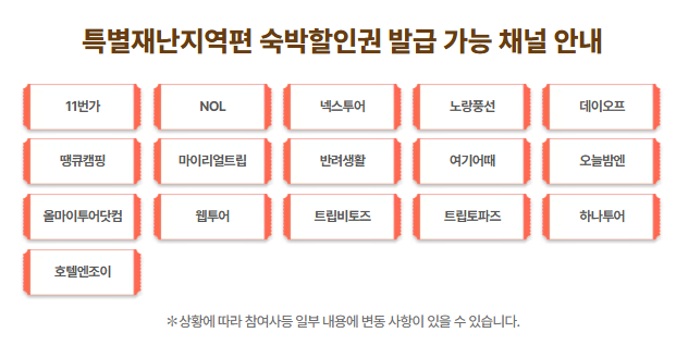 • 특별재난지역 7만 원 이상 숙박 시 5만 원 할인