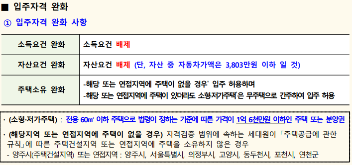 입주자격 완화 사항