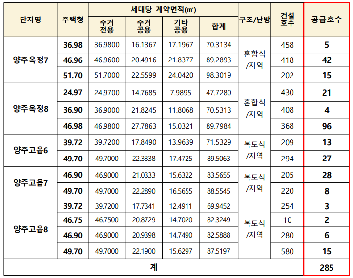- 양주옥정·고읍지구 등 다양한 단지 공급