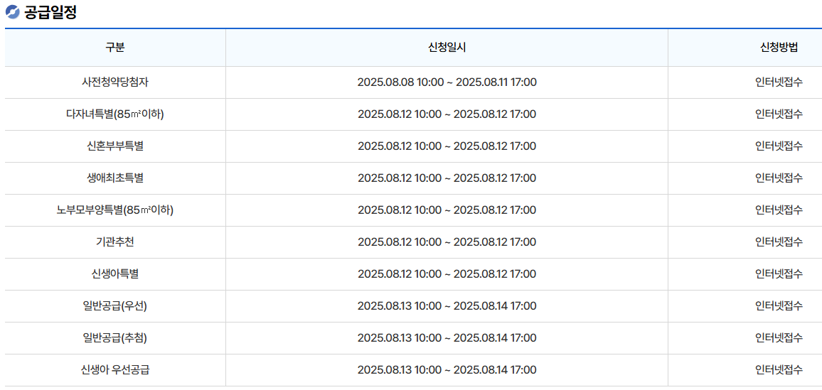 - 일반공급: 8월 13~14일(인터넷 청약)