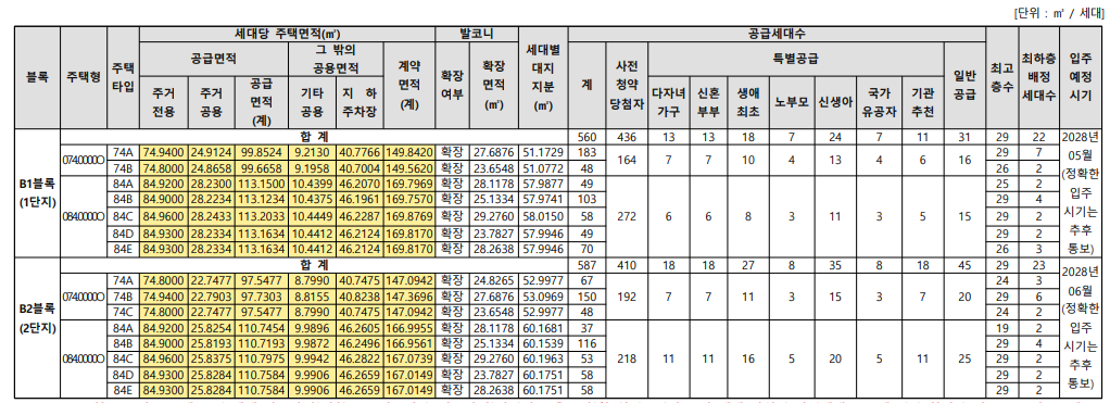 - 전용 74㎡(AC),84(AE) 타입 다양