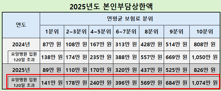 - 소득 구간과 입원일수로 상한액이 달라짐