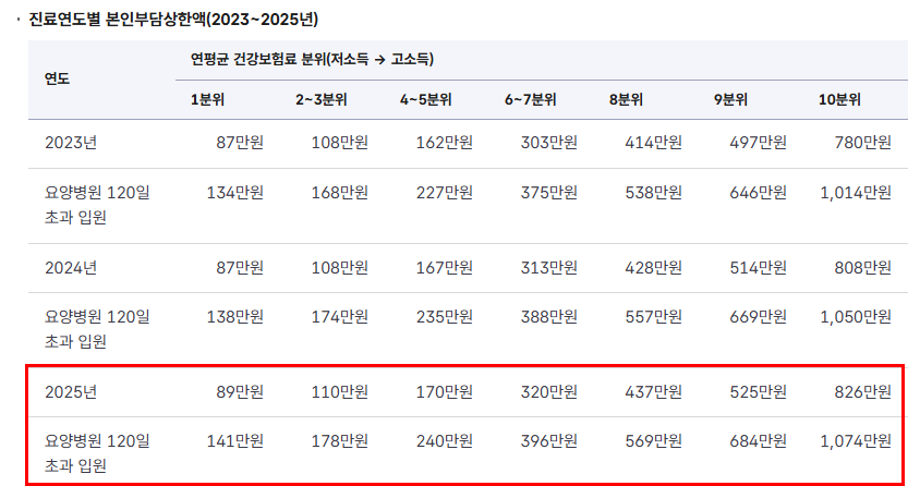 다만 비급여 진료비나 상급병실료 차액, 선택진료료 등은 포함되지 않으니까 이 점은 주의해야 합니다. 건보가 적용되는 진료비만 상한제 대상이 되거든요.