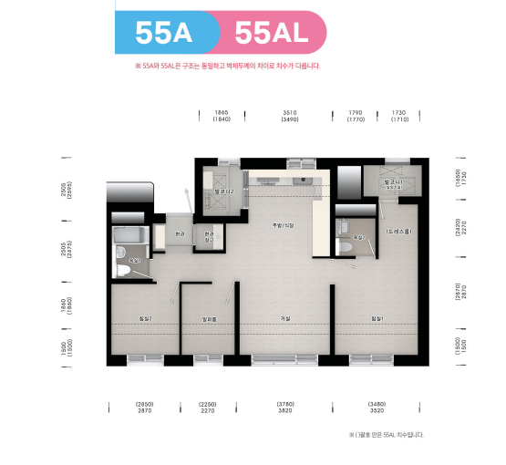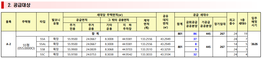 - 전용면적 55㎡ 단일타입, 전세대 발코니 확장형