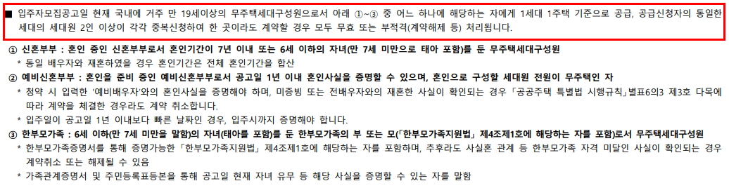 - 만 19세 이상 무주택세대구성원