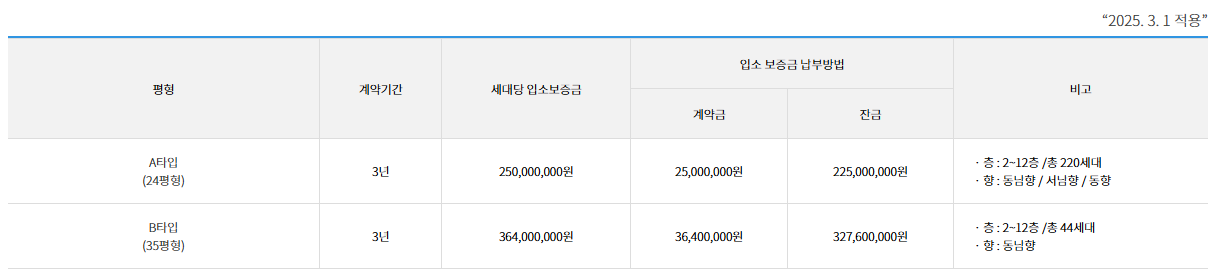 - 보증금 1억5,000만원~3억원대(평형별)