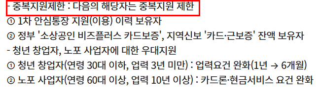 - 정부의 '소상공인 비즈플러스 카드보증'이나 지역신보 '카드·근보증' 잔액을 보유한 경우