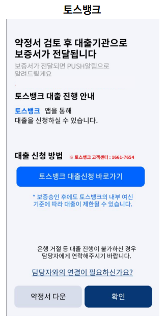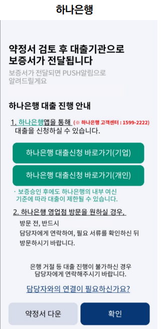 보증 승인 후 원하는 은행(우리은행, 카카오뱅크, 토스뱅크, 하나은행)의 모바일앱을 통해 신청합니다.