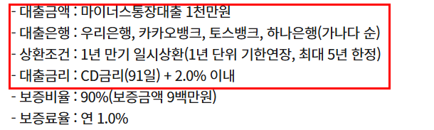 자영업자 안심통장 2호 마이너스 통장 신청대상 신청방법
