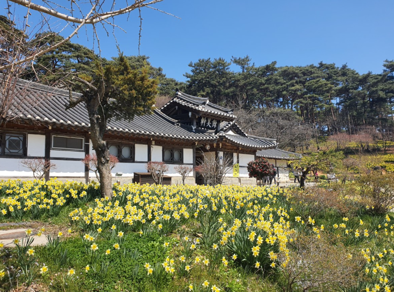 - 특징: 백 년 고택의 고즈넉한 분위기와 수선화가 어우러진 풍경이 아름다운 곳으로, 고택과 꽃밭의 경계를 이루는 'U 자형'의 토담 뒤 산의 능선을 따라 황금빛 수선화 풍경이 장관을 연출합니다. 이곳에서는 전통민속놀이 체험, 한복&교복 체험 등을 통해 다채로운 봄나들이를 경험할 수 있습니다.