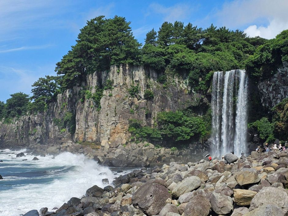 정방폭포의 독특한 바다 낙하 장관