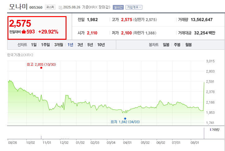 이러한 소식이 전해지면서 뜻하지 않게 완구 제조업체인 모나미의 8월 26일 주가는 상한가를 기록하며 장을 마쳤습니다.