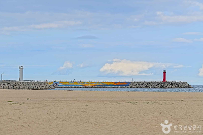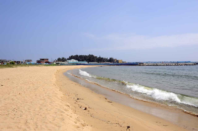 넓고 깨끗한 백사장과 맑은 바닷물, 완만한 해안선이 특징입니다. 가족 단위 피서객이 많고, 인근에 가진항이 있어 신선한 해산물도 즐길 수 있습니다.