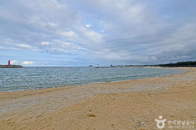 넓고 깨끗한 백사장과 맑은 바닷물, 완만한 해안선이 특징입니다. 가족 단위 피서객이 많고, 인근에 가진항이 있어 신선한 해산물도 즐길 수 있습니다.