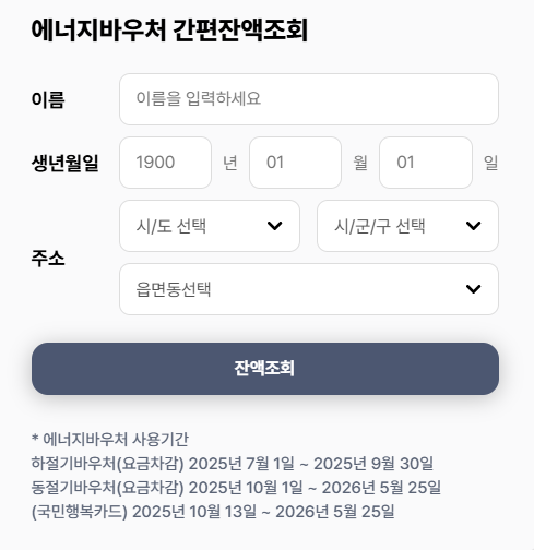 2025 기초생활수급자 에너지 바우처 신청 방법 및 신청 기간