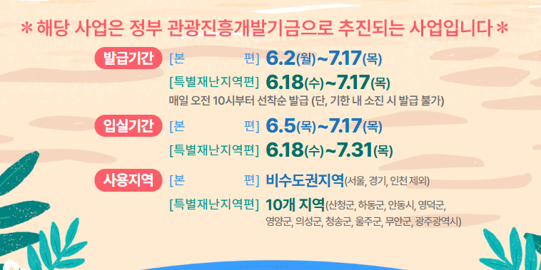 - 특별재난지역편: 6월 18일~7월 17일 발급, 6월 18일~7월 31일 입실 가능