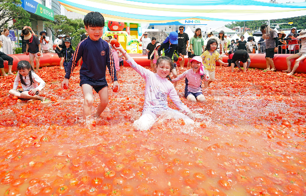 - 신선한 토마토가 가득한 풀장에서 물놀이와 함께 즐기는 특별한 체험