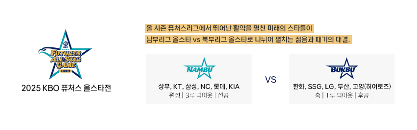 올스타 프라이데이에는 KBO 리그의 미래를 책임질 퓨처스(2군) 올스타전이 진행되어, 샛별들의 뜨거운 경쟁을 미리 만나볼 수 있습니다.
