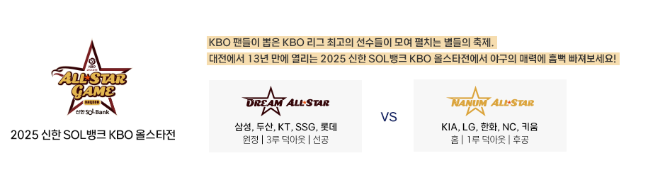 야구팬 여러분, 뜨거운 여름을 더욱 뜨겁게 달굴 2025 신한 SOL뱅크 KBO 올스타전이 드디어 코앞으로 다가왔습니다! 한 해 동안 KBO 리그를 빛낸 최고의 별들이 한자리에 모여 펼치는 축제의 장, 그 생생한 현장에 함께할 준비 되셨나요?