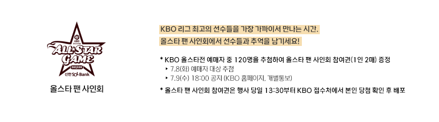 - 올스타전 (7월 12일) 입장권 선예매: