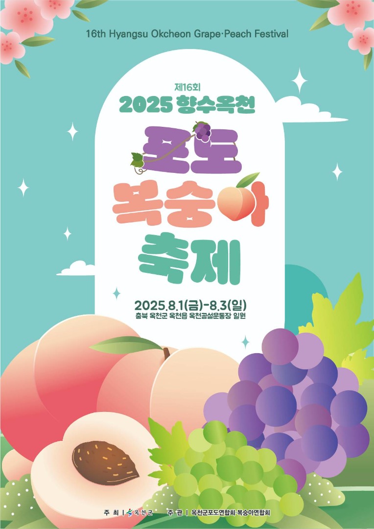 여름의 절정, 달콤한 과일 향기와 함께하는 충북 옥천의 대표 축제! 2025년 8월, 옥천에서 열리는 제16회 향수 옥천 포도·복숭아 축제는 전국 과일 마니아와 여행자들에게 잊지 못할 추억을 선사합니다. 신선한 과일, 다채로운 공연, 체험 프로그램까지 가득한 축제 현장을 지금부터 꼼꼼히 안내해 드릴게요.