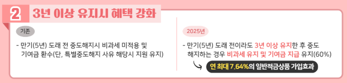- 계좌 유지: 중간에 납입이 없더라도 계좌는 해지되지 않습니다. 단, 만기 전 해지 시 정부기여금 및 비과세 혜택은 일부 제한될 수 있습니다.