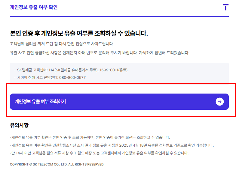 - SKT 이용자가 아니더라도, 유출 시점(2025년 4월 18일)에 SKT 가입자였다면 확인이 가능합니다.