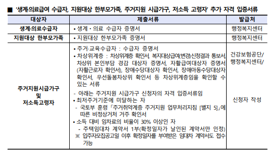 - 현장 방문 접수, 공고일 이후 발급 서류만 인정