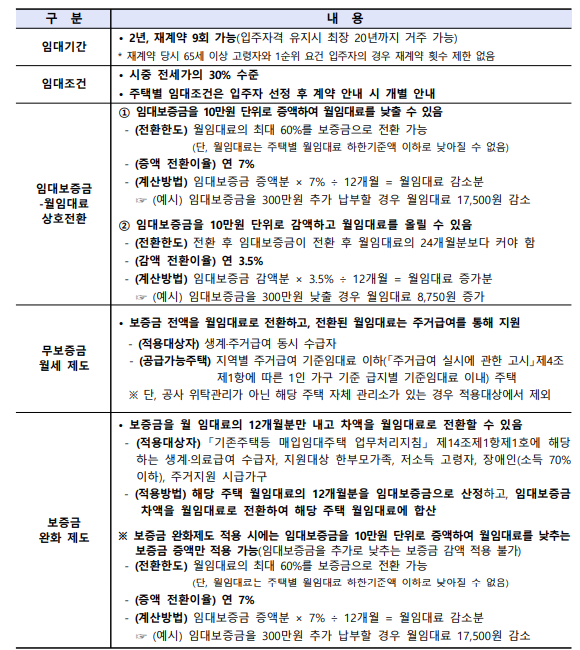 - 임대차 갱신 시 임대조건, 자격기준 조정될 수 있음