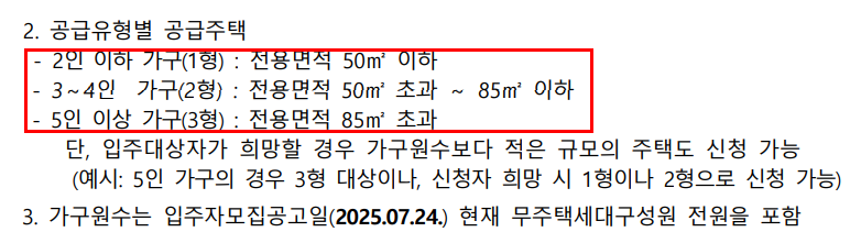- 1~2인가구(1형), 3~4인가구(2형) 별도 유형 분류