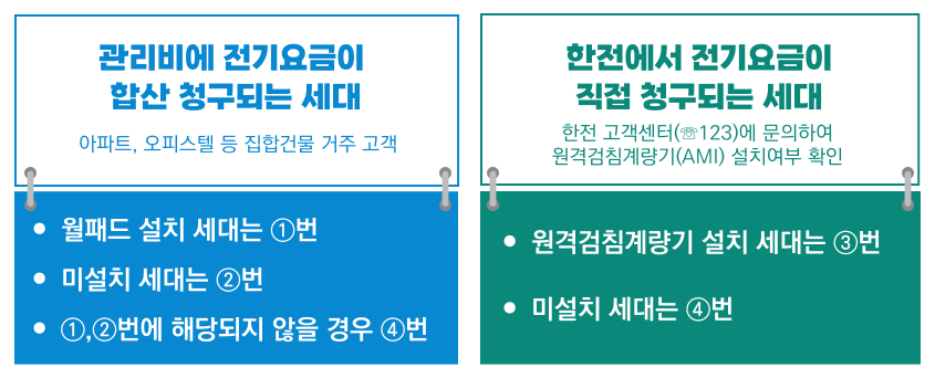 | 아파트 관리비 합산 청구(월패드 미설치) | 관리사무소 문의, 스마트전력 플랫폼 사업 참여 시 전용 앱에서 확인 |