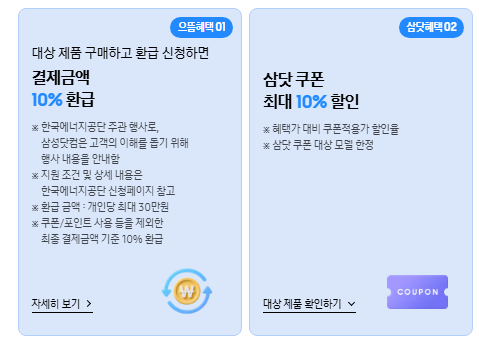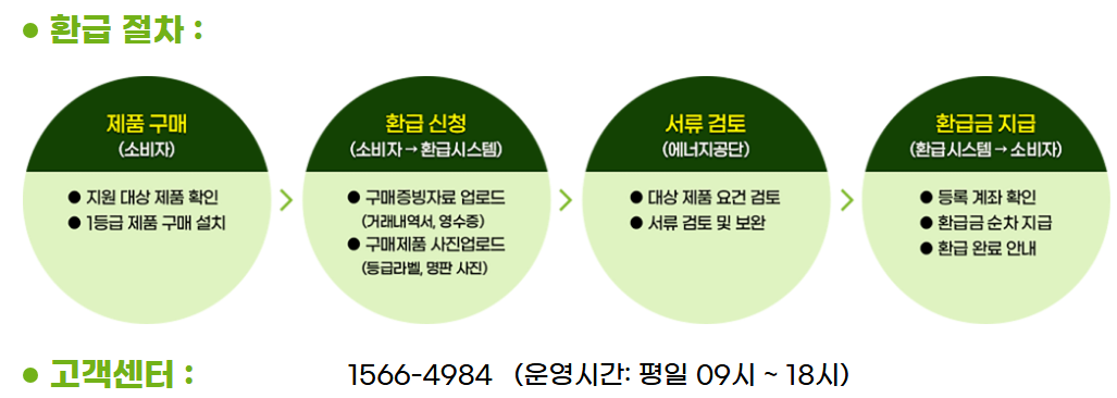 - 필수 서류: 에너지효율 라벨, 명판 사진, 영수증, 거래내역서 등