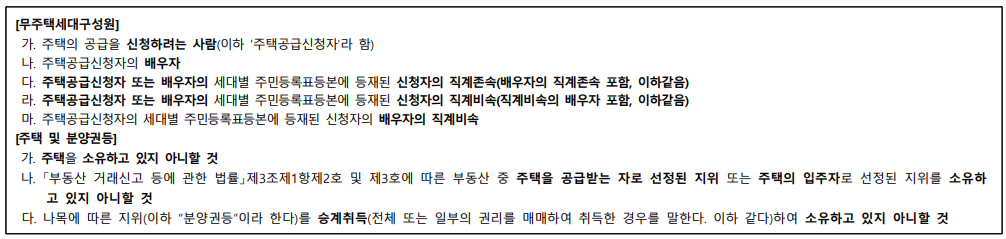- 만 19세 이상 무주택세대구성원