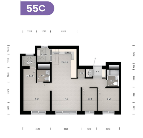 - 전용면적 55㎡ 단일타입, 전세대 발코니 확장형