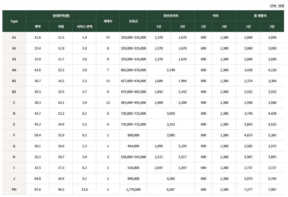 - 보증금 1억5,000만원~3억원대(평형별)