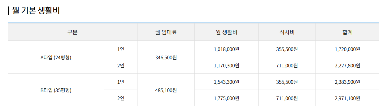 - 월 생활비 120만원~150만원(1인 기준)