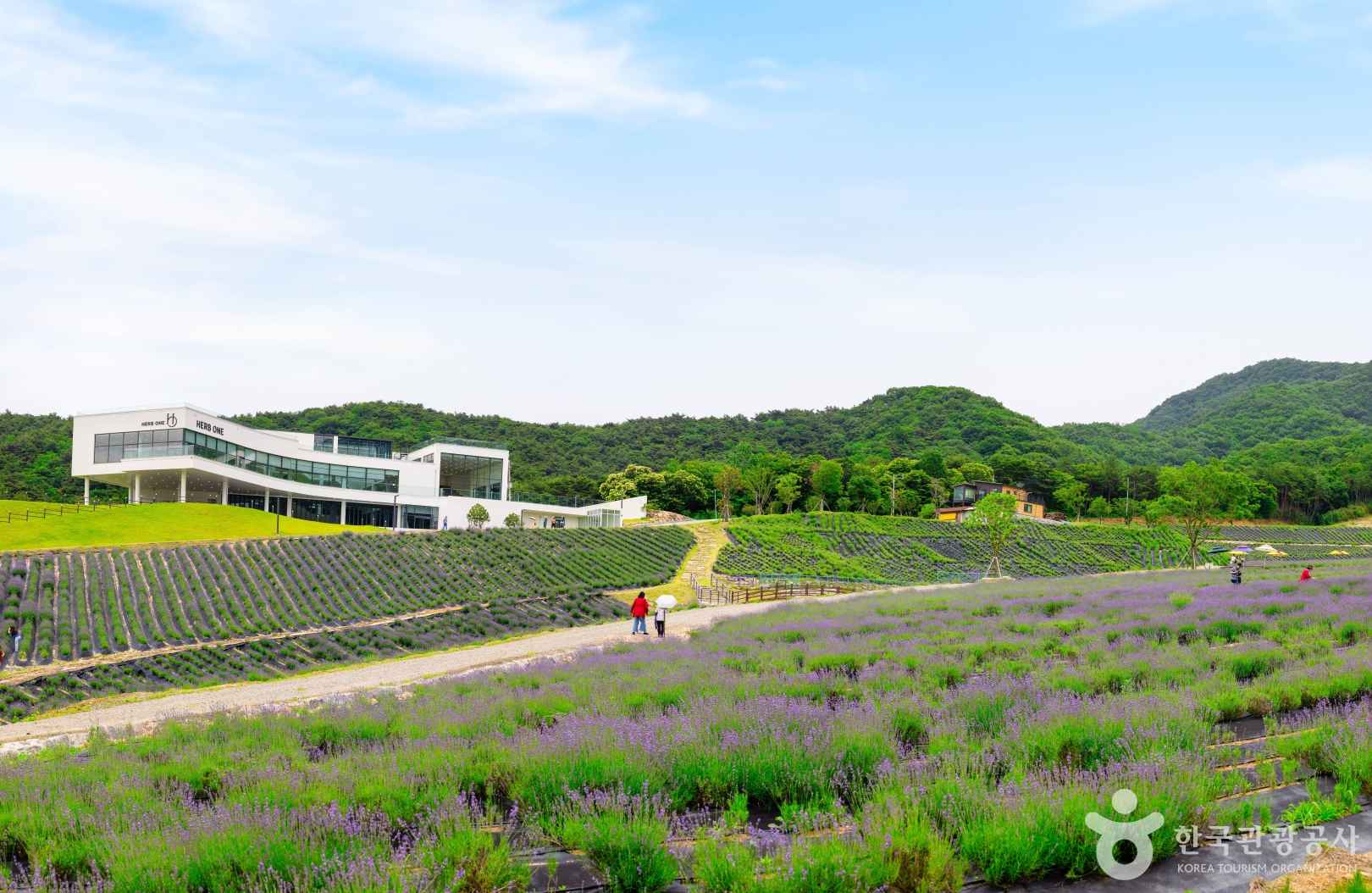 10만 평 규모의 농원에는 약 30만 주의 라벤더와 4만 주의 라반딘이 조성되어 국내 최대 규모를 자랑합니다.