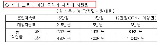 이렇게 모인 자금은 자녀의 교육비, 학원비, 교재비 등 다양한 교육 관련 지출에 자유롭게 활용할 수 있습니다. 또한, 참여 가구에는 저축·금융 기본교육과 1:1 재무상담 컨설팅 등 다양한 부가 서비스가 제공되어 자산관리 능력까지 키울 수 있습니다.