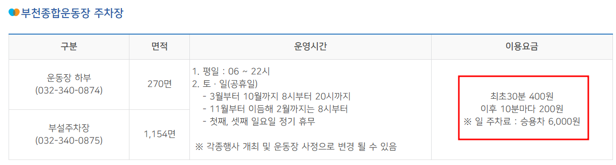 - 주차요금: 기본요금 30분 400원, 10분당 200원